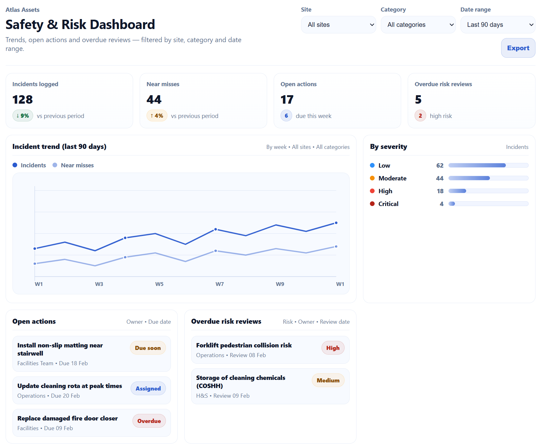 Νέα ενότητα Safety & Risk Management με Overview, Incidents και Risks